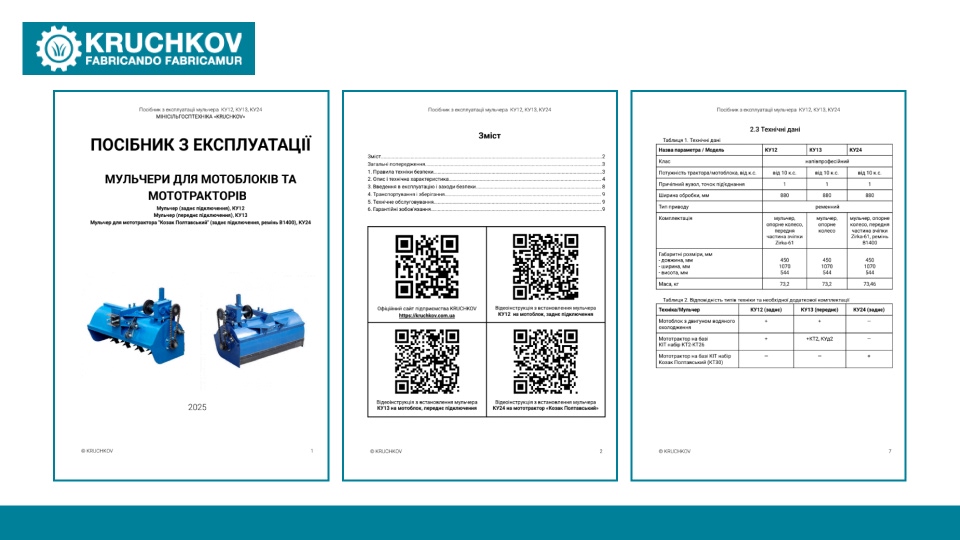 Посібник з експлуатації мульчера – розроблений і розміщений на сайті