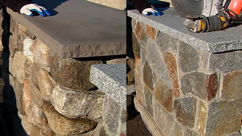 Каменяр звертає нашу увагу на те, що каміння в кладці може мати різний зовнішній вигляд, але при цьому всі вони підігнані один до одного. У першій кладці збережено природний вигляд, а у другій усі грані оброблені.