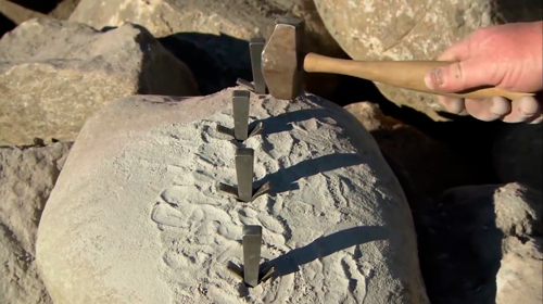 Щоб розколоти великий камінь на дві частини, необхідно просвердлити серію отворів по лінії бажаного розколу.